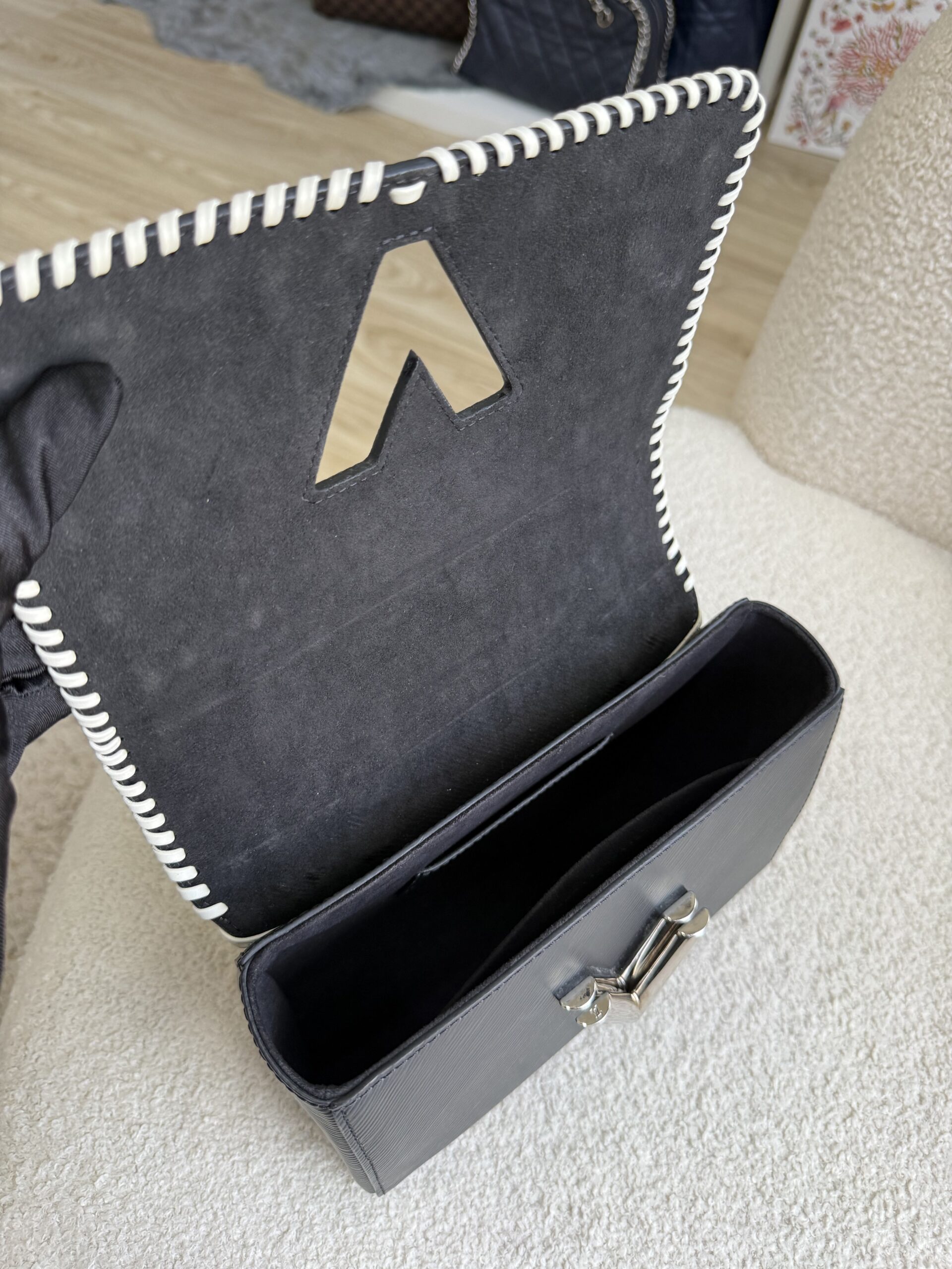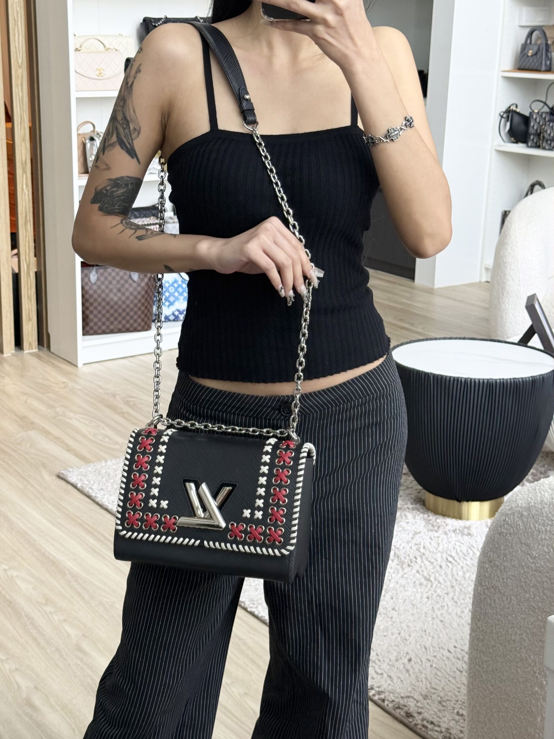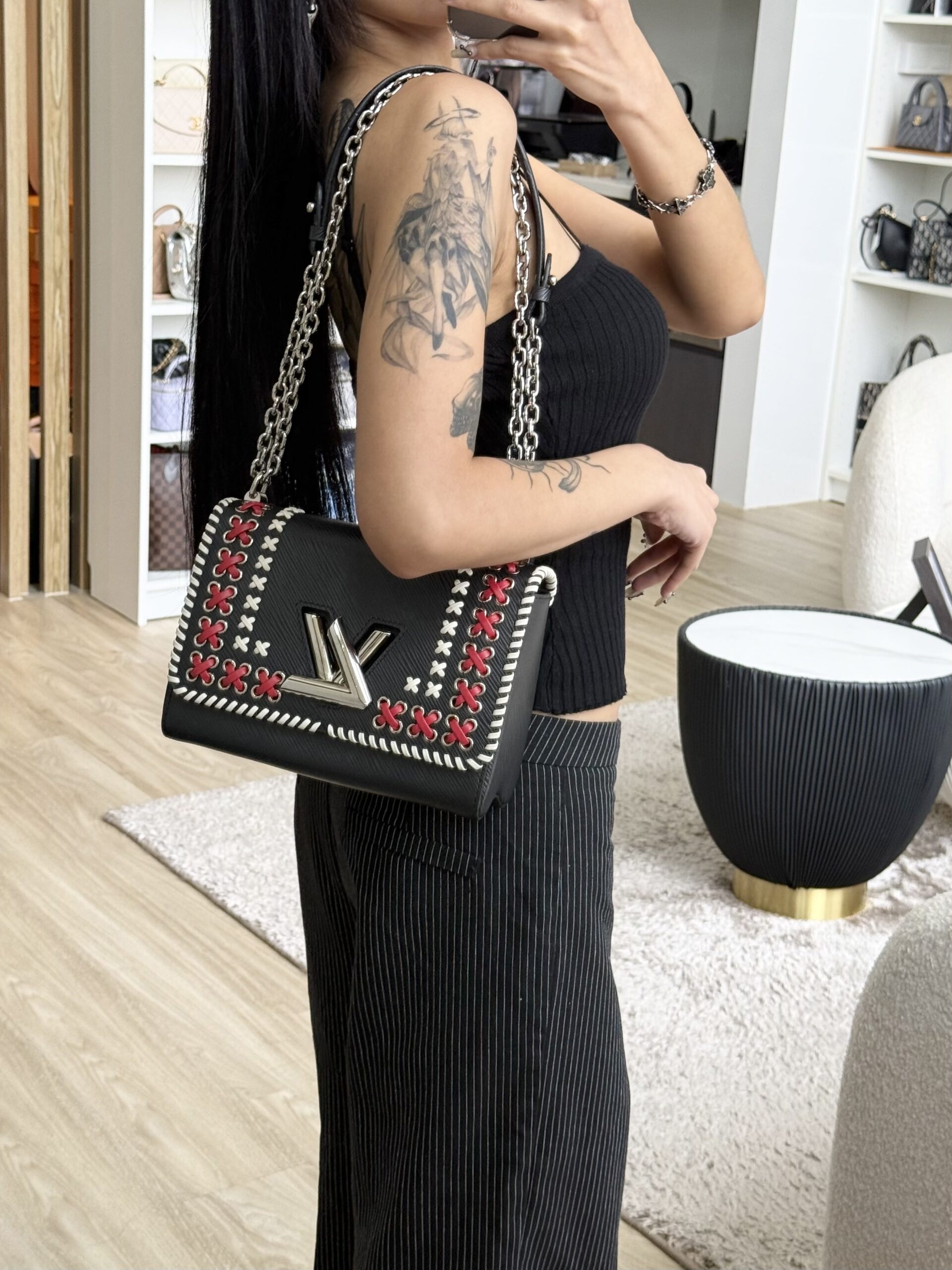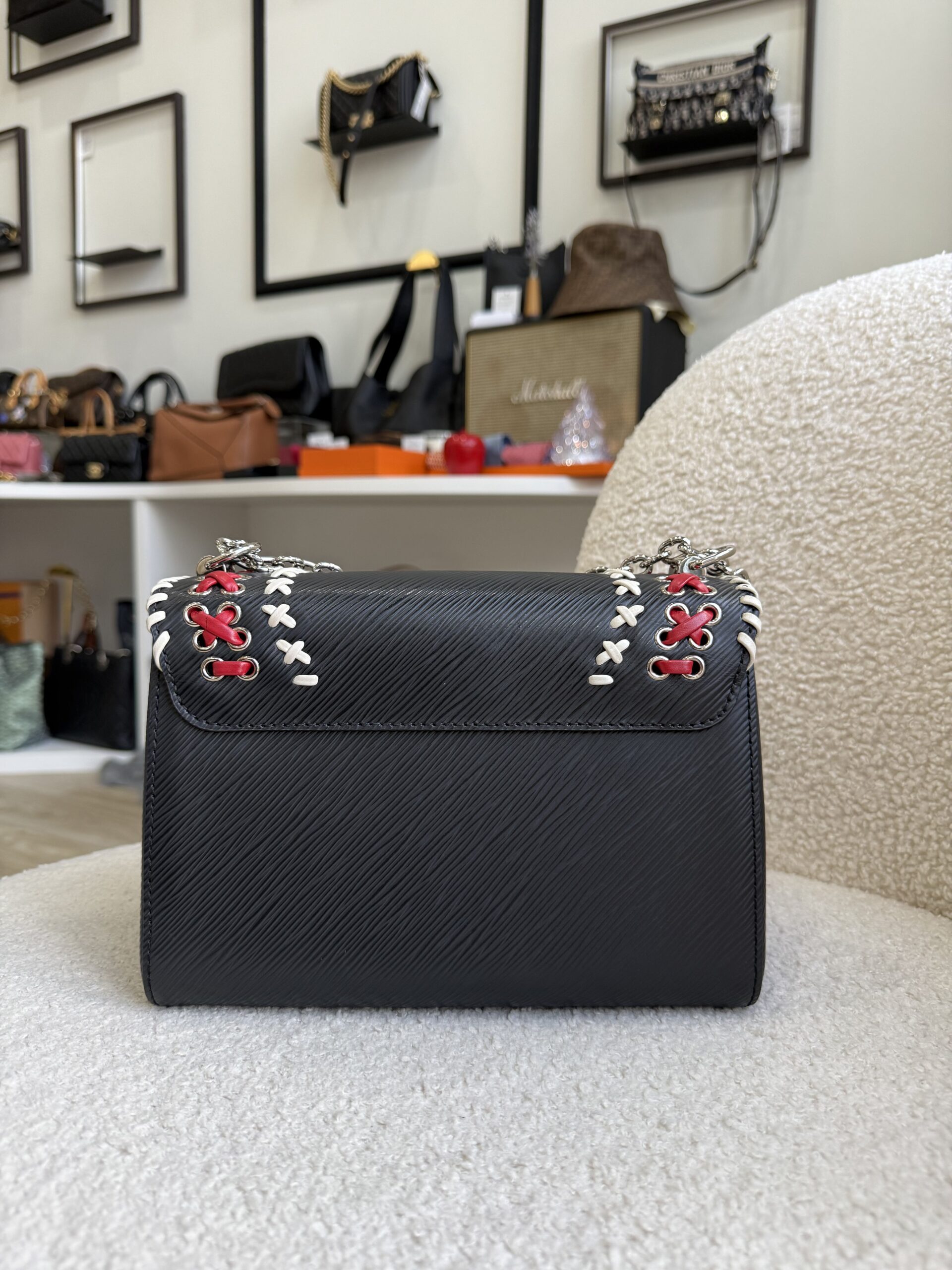 LV Twist MM Red/White Trim Shoulder in Black Epi Leather SHW | ILG4628