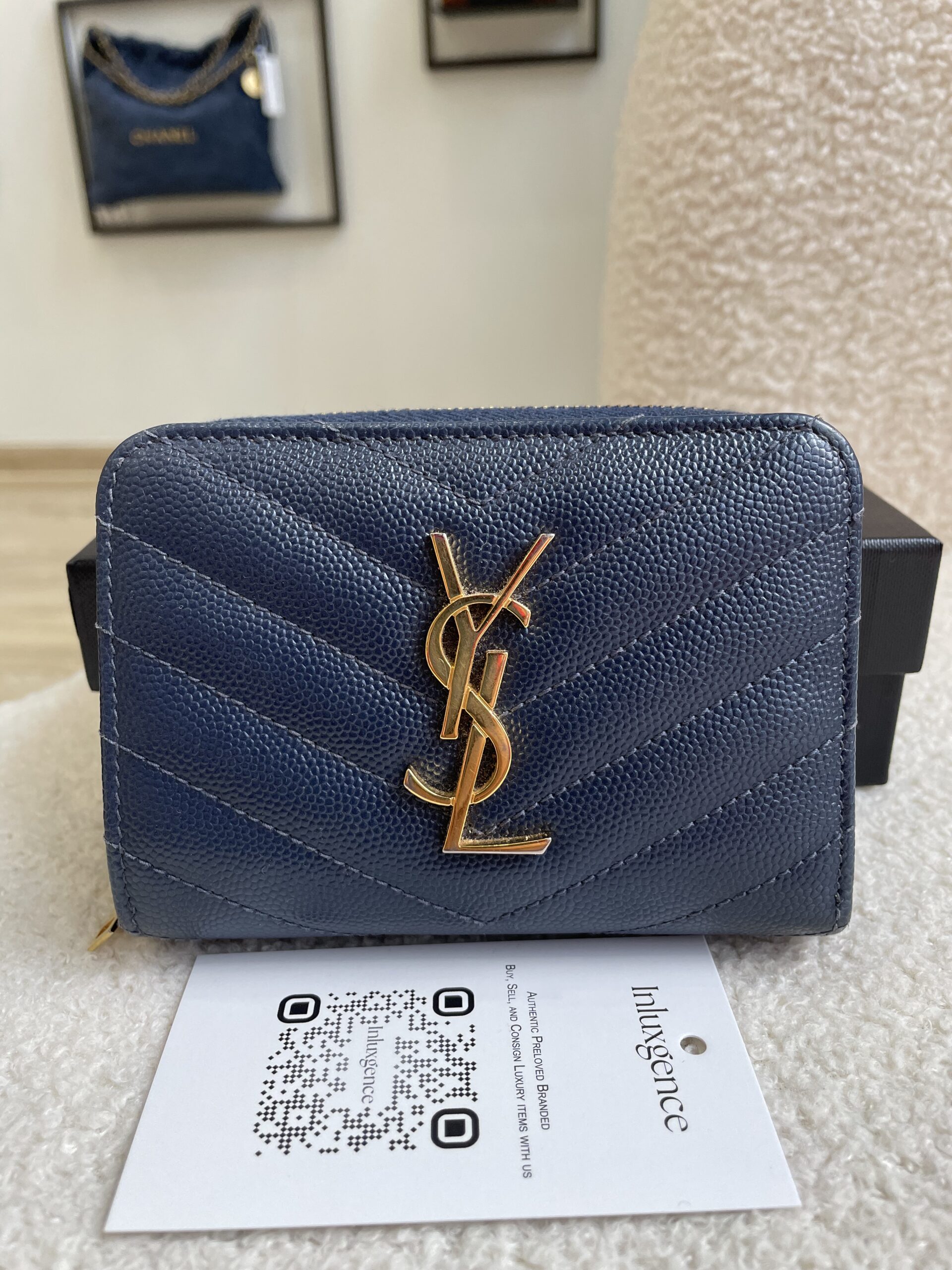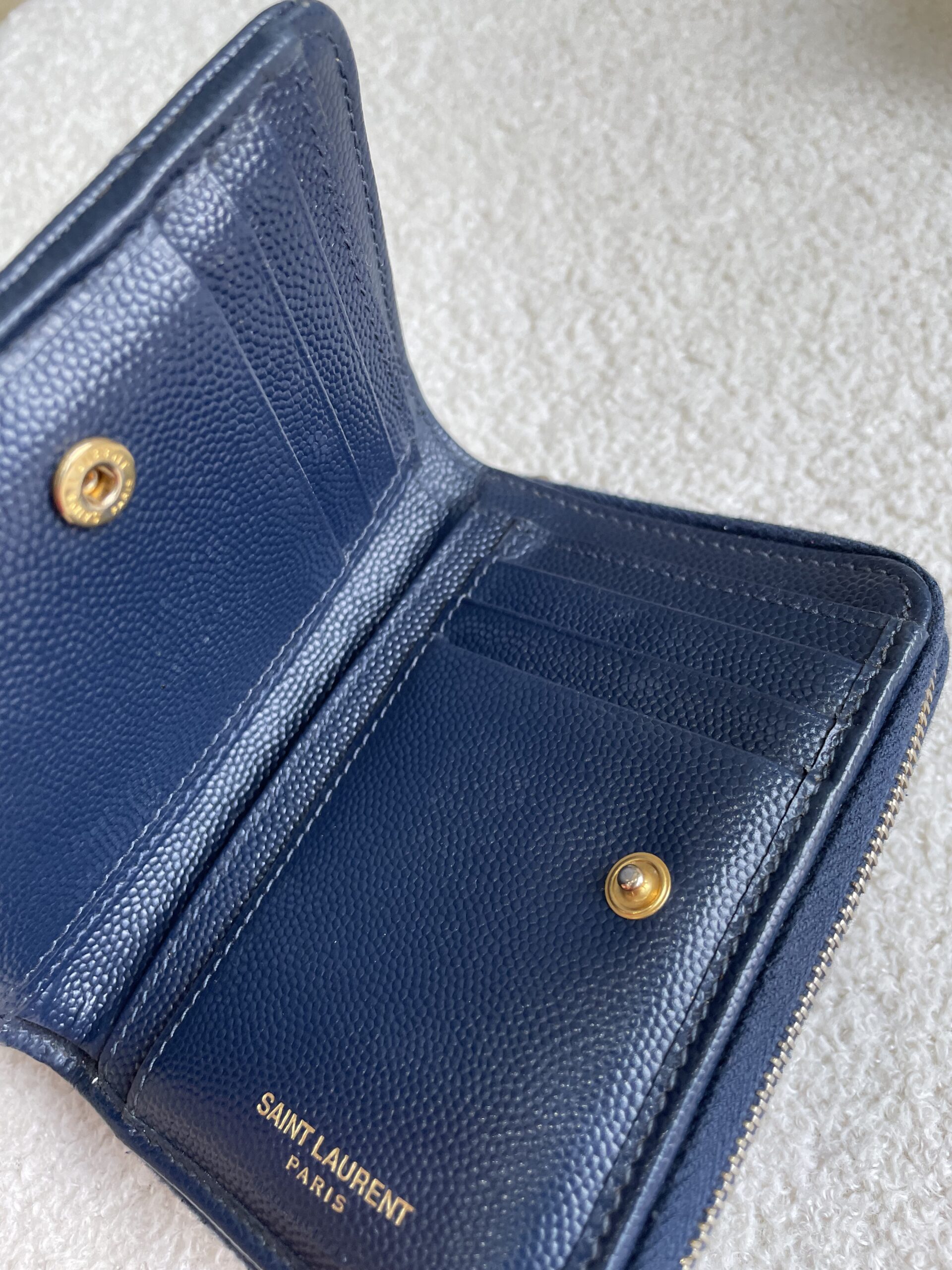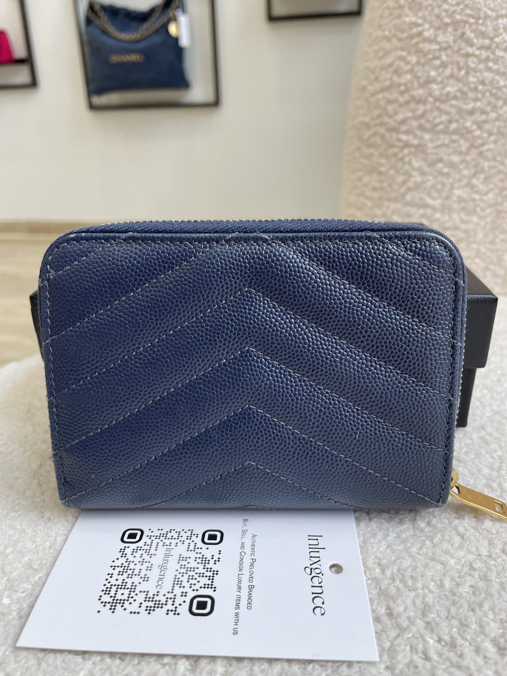 YSL Blue Grained Leather Zip Wallet | ILG2297