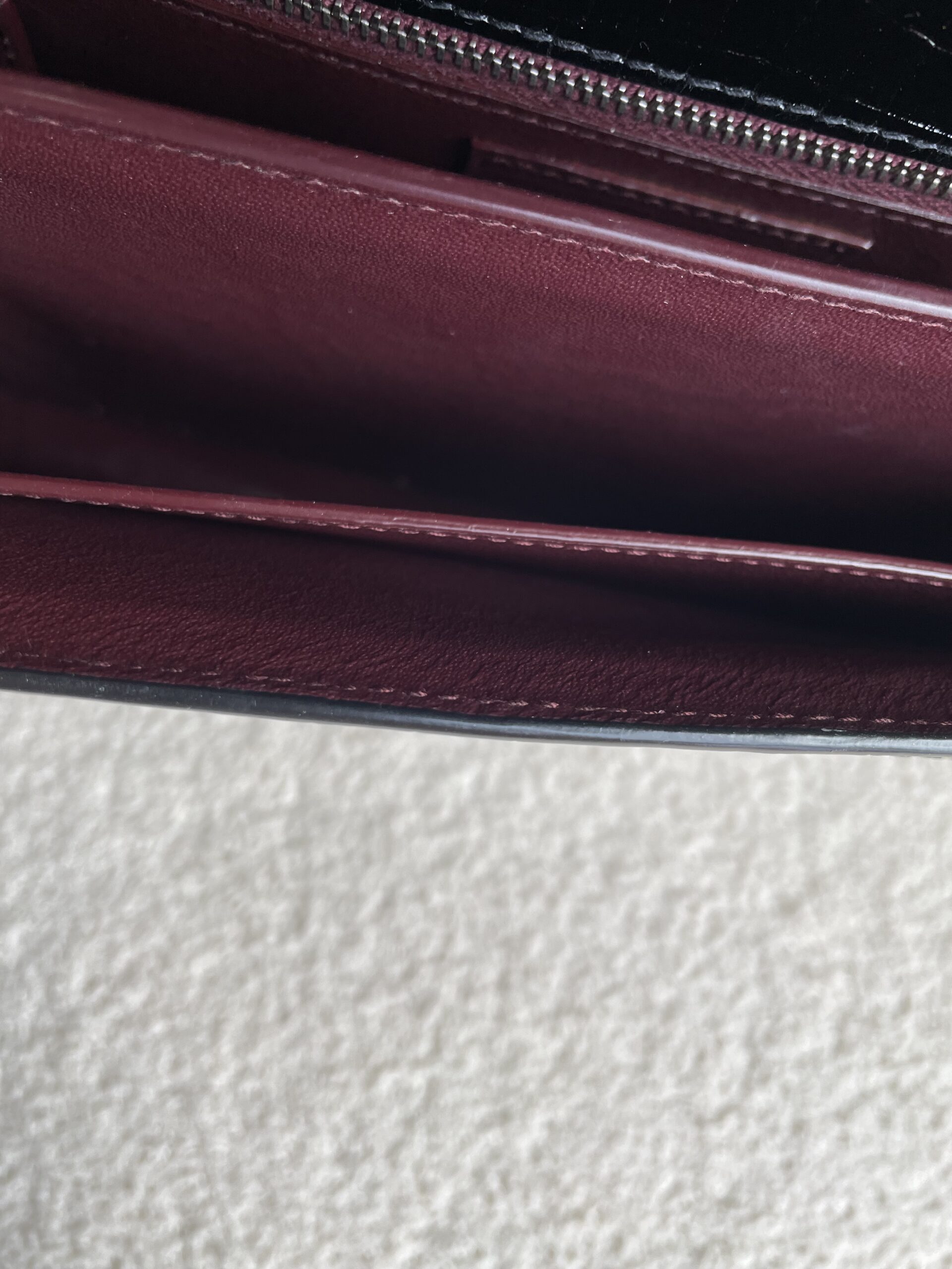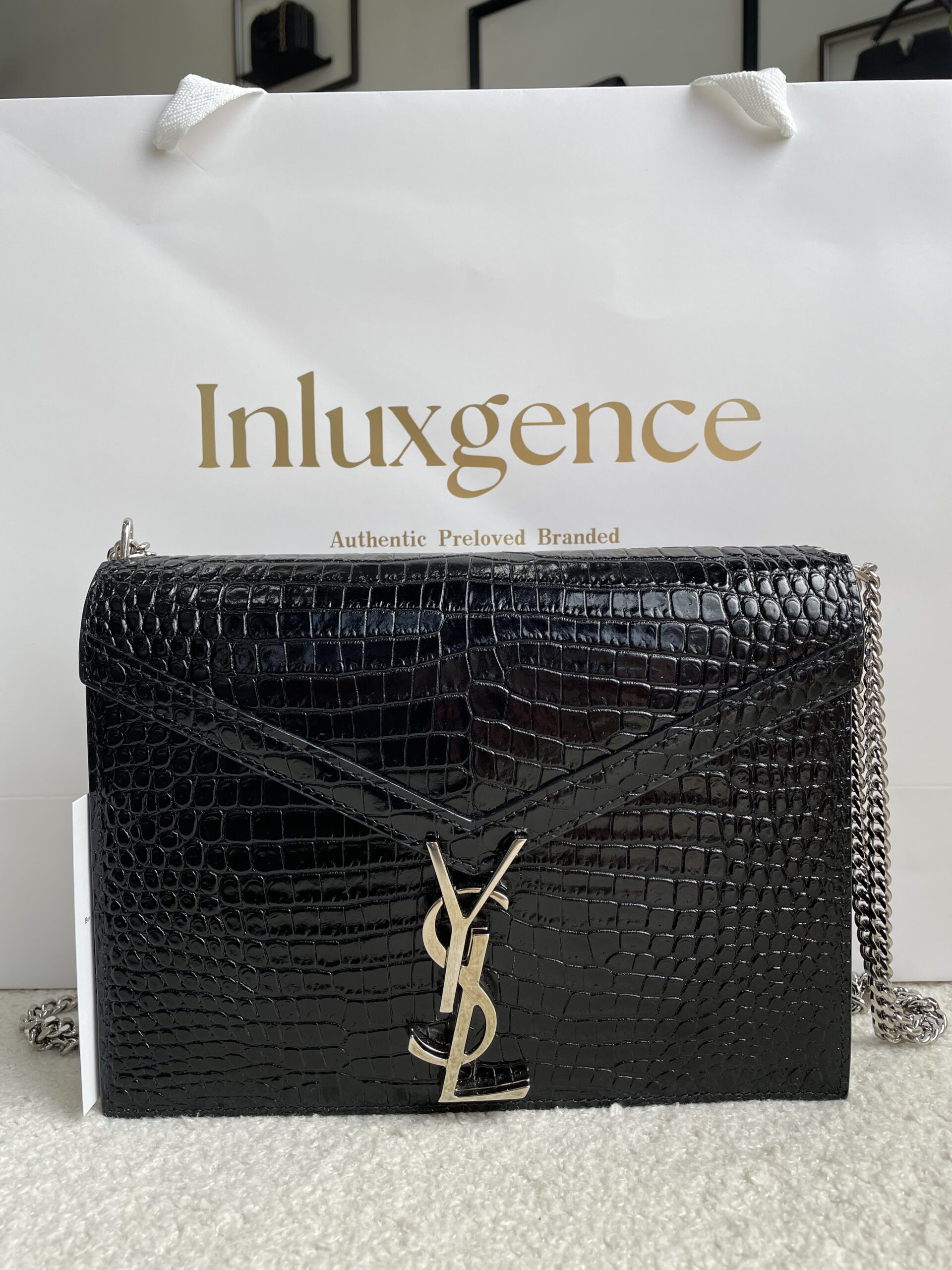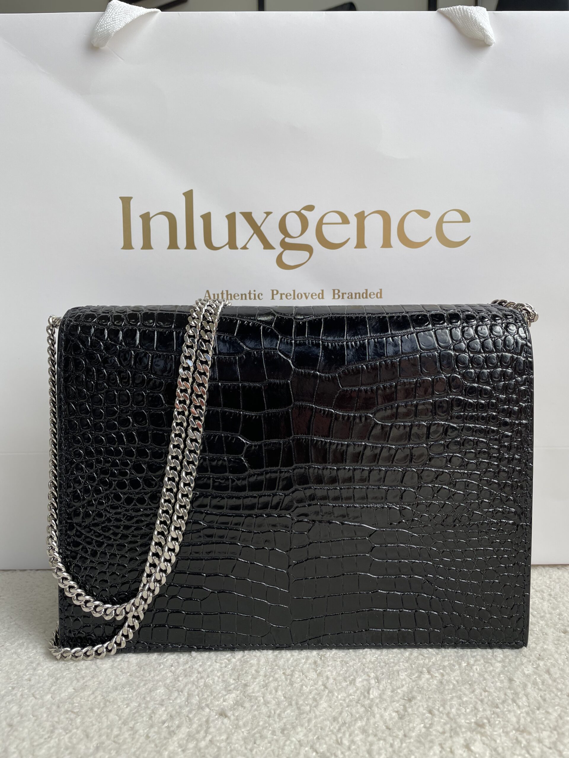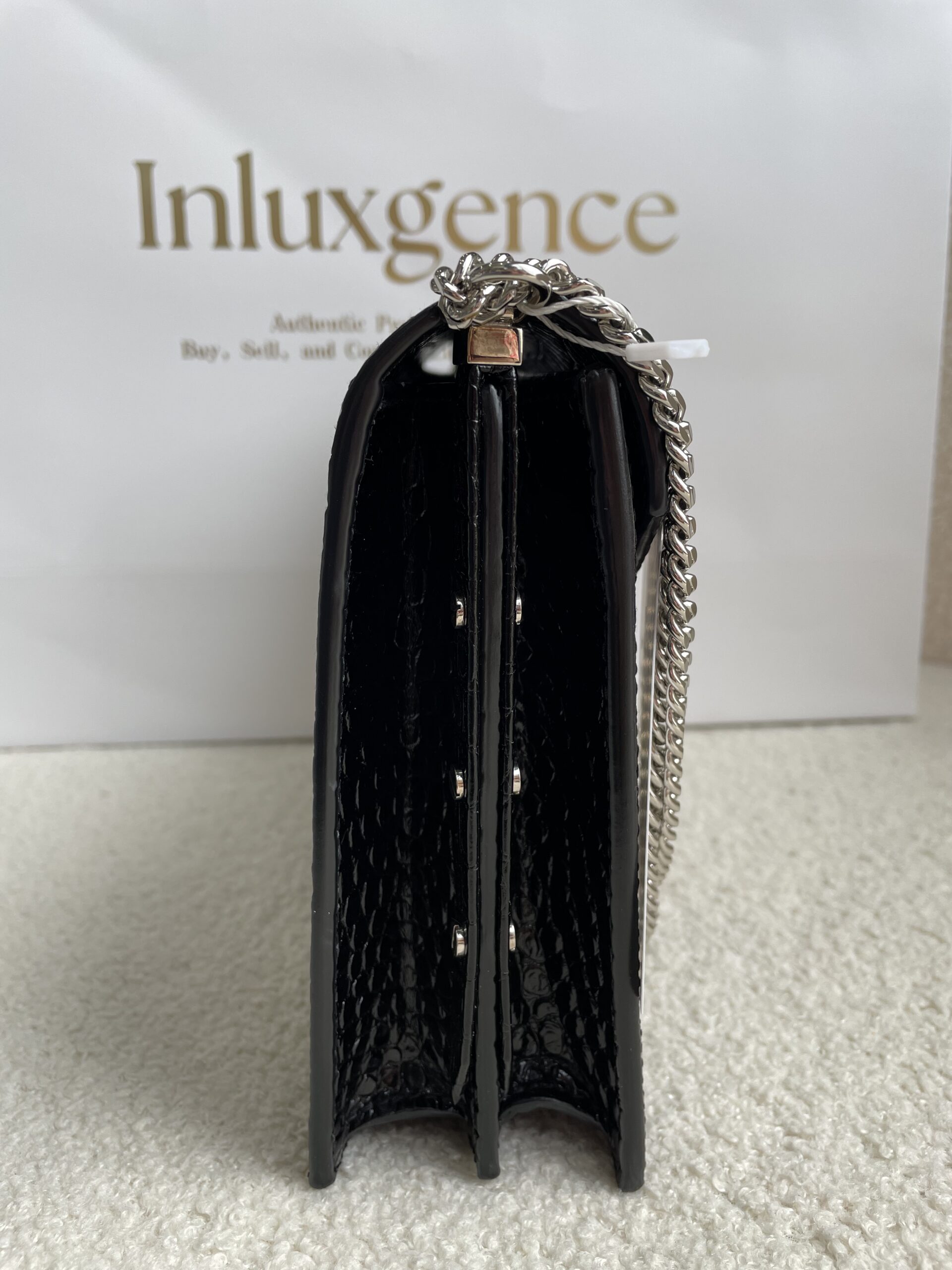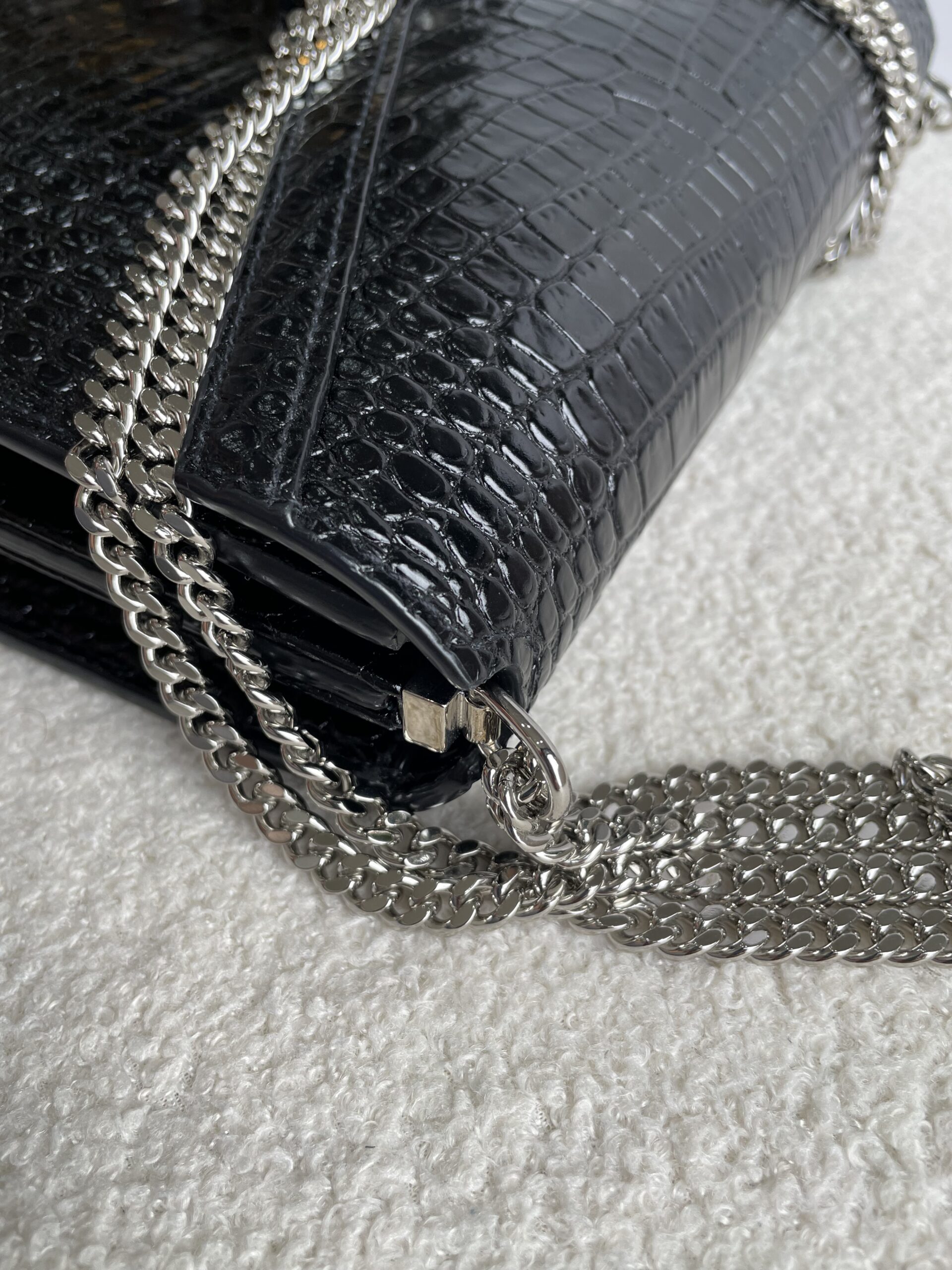 YSL Cassandra Shoulder Bag Black Croc Embossed Leather SHW