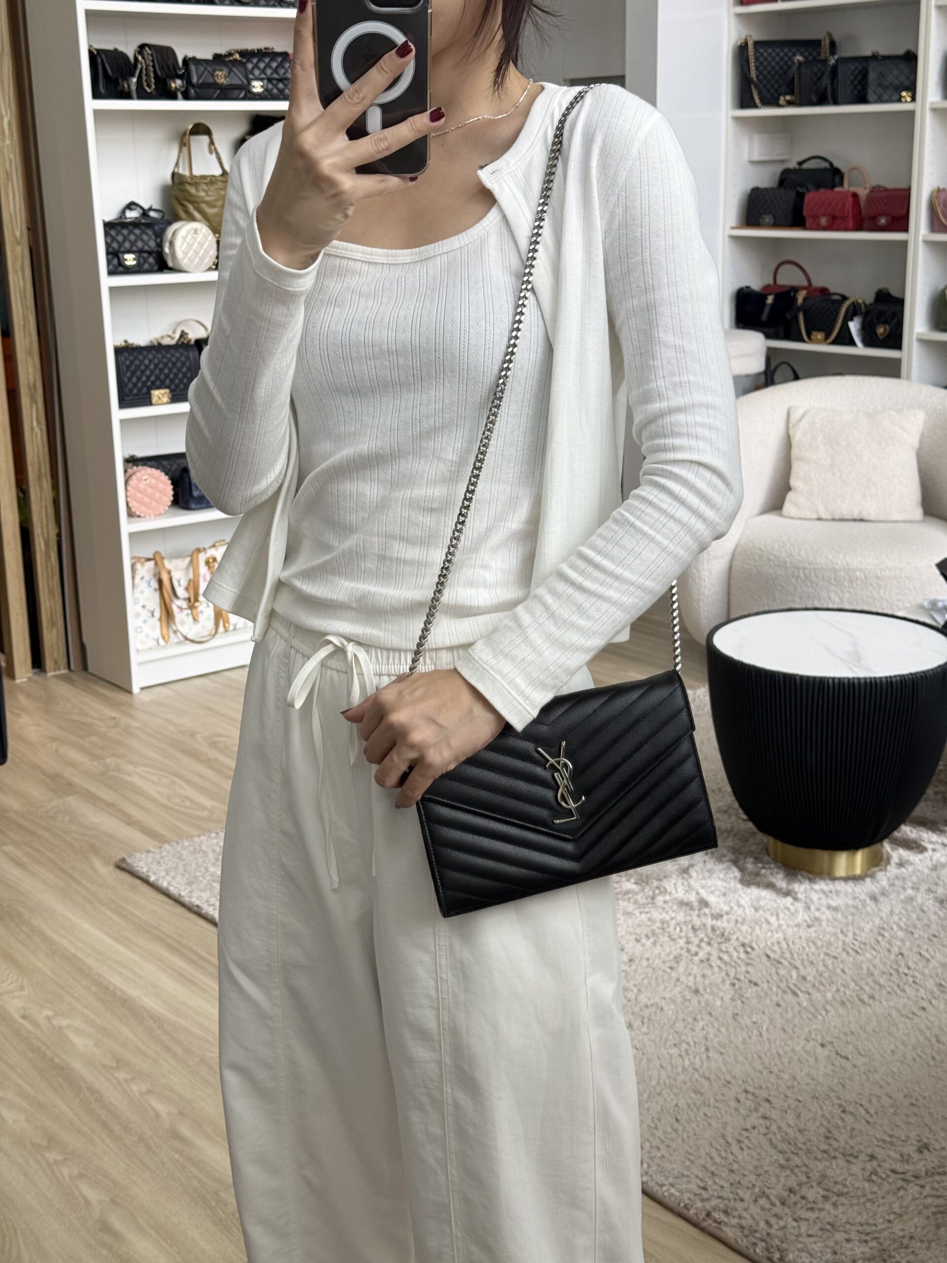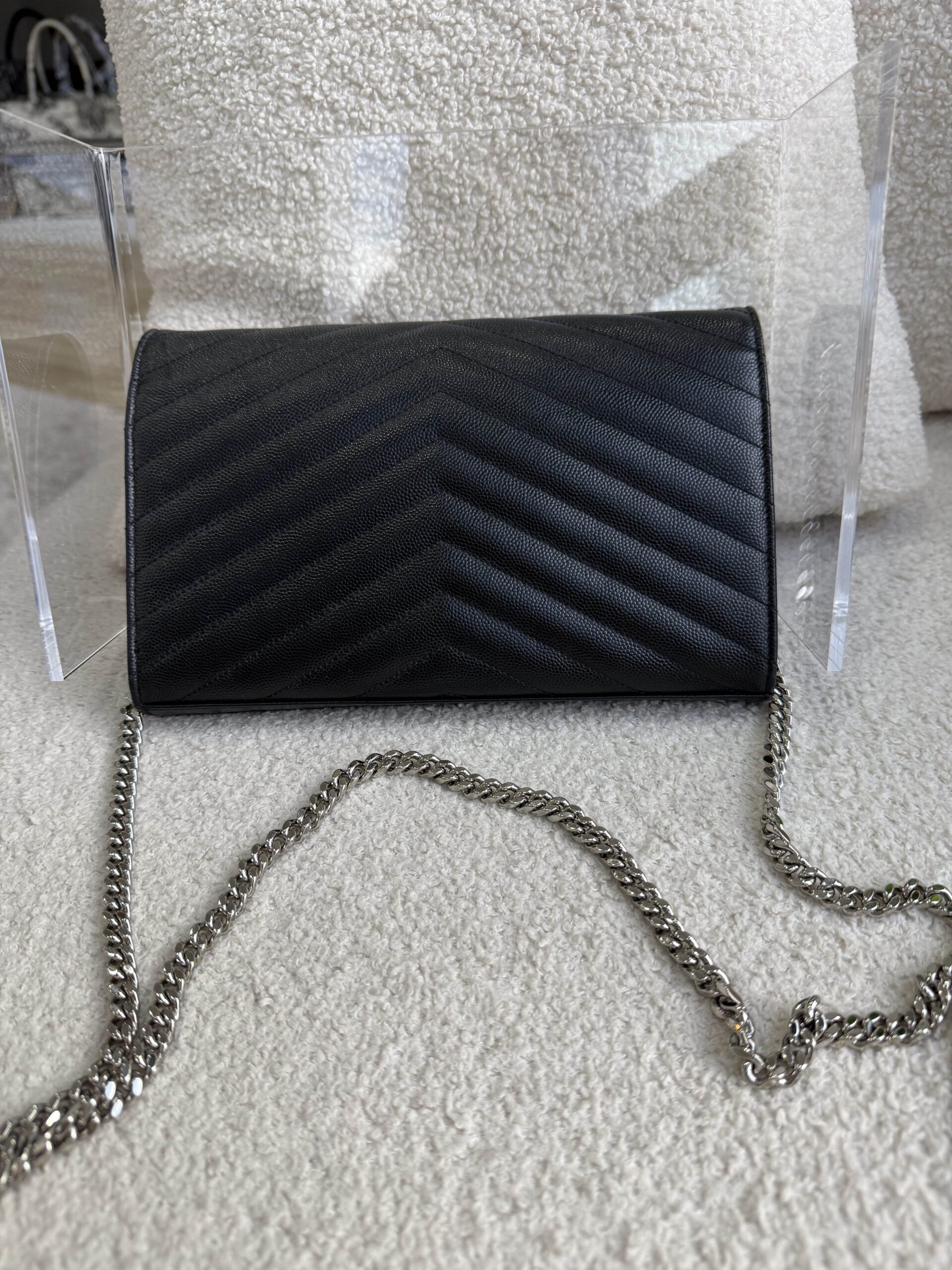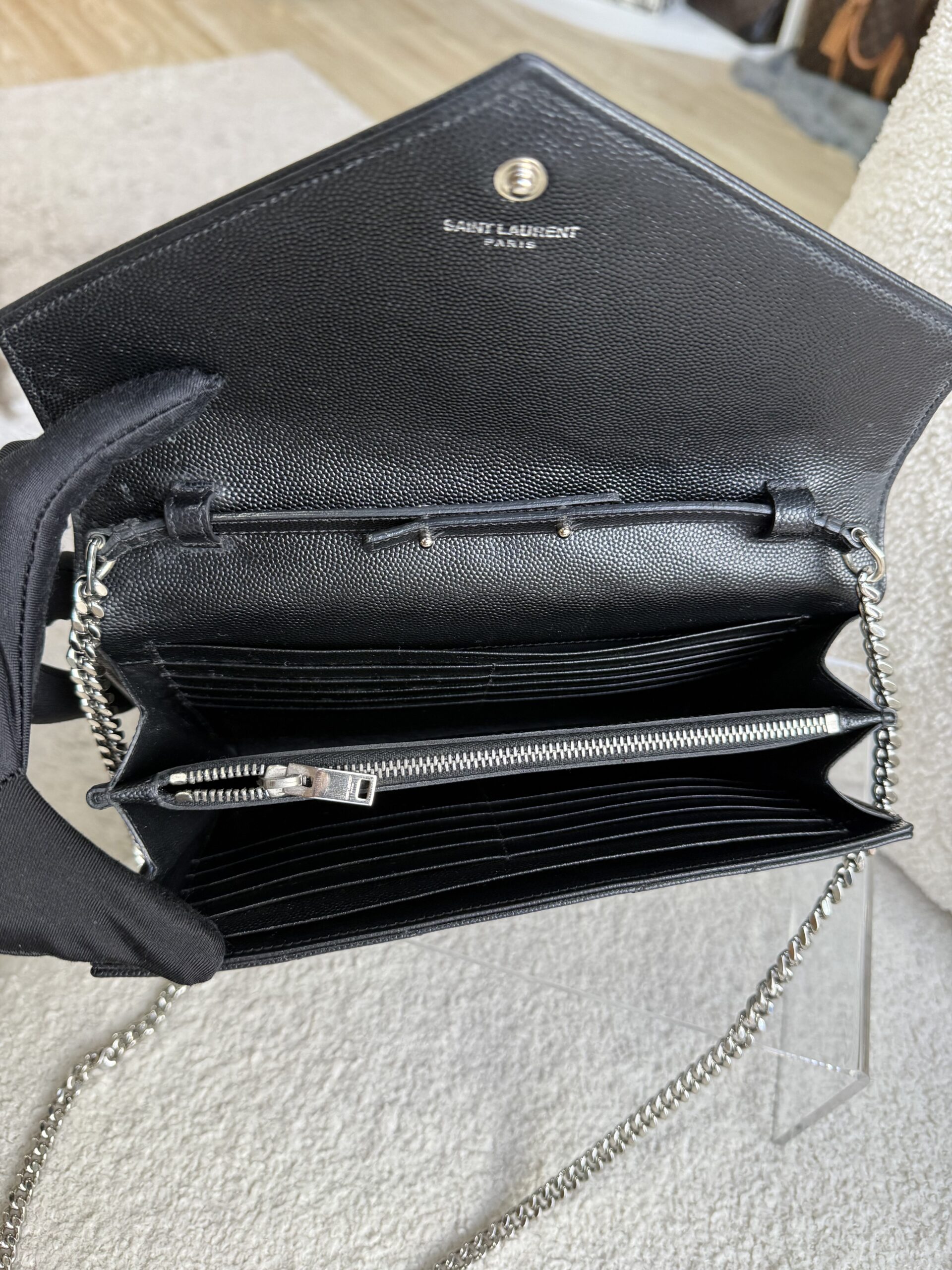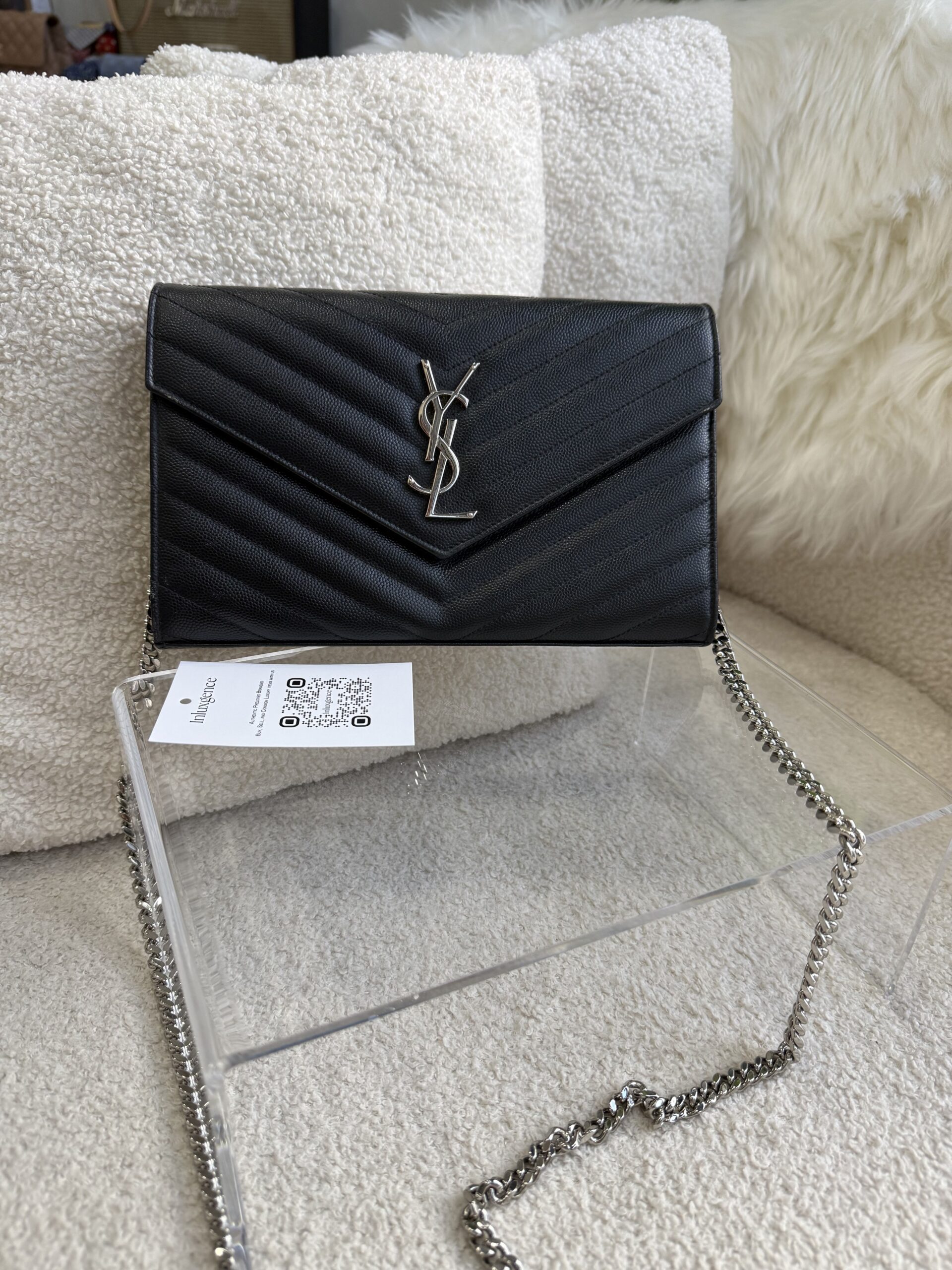 YSL Cassandre WOC Black Grained Leather SHW | ILG5179