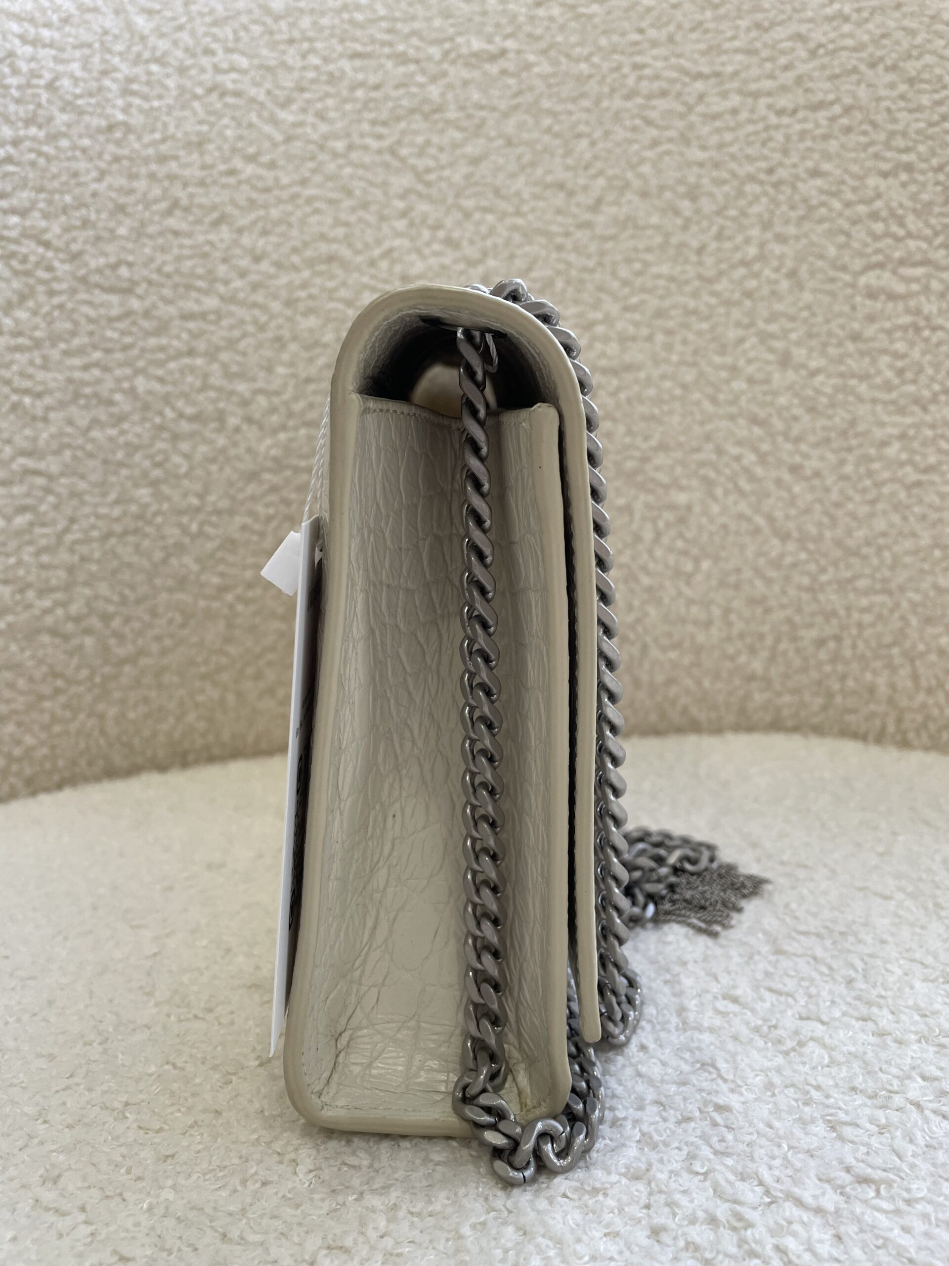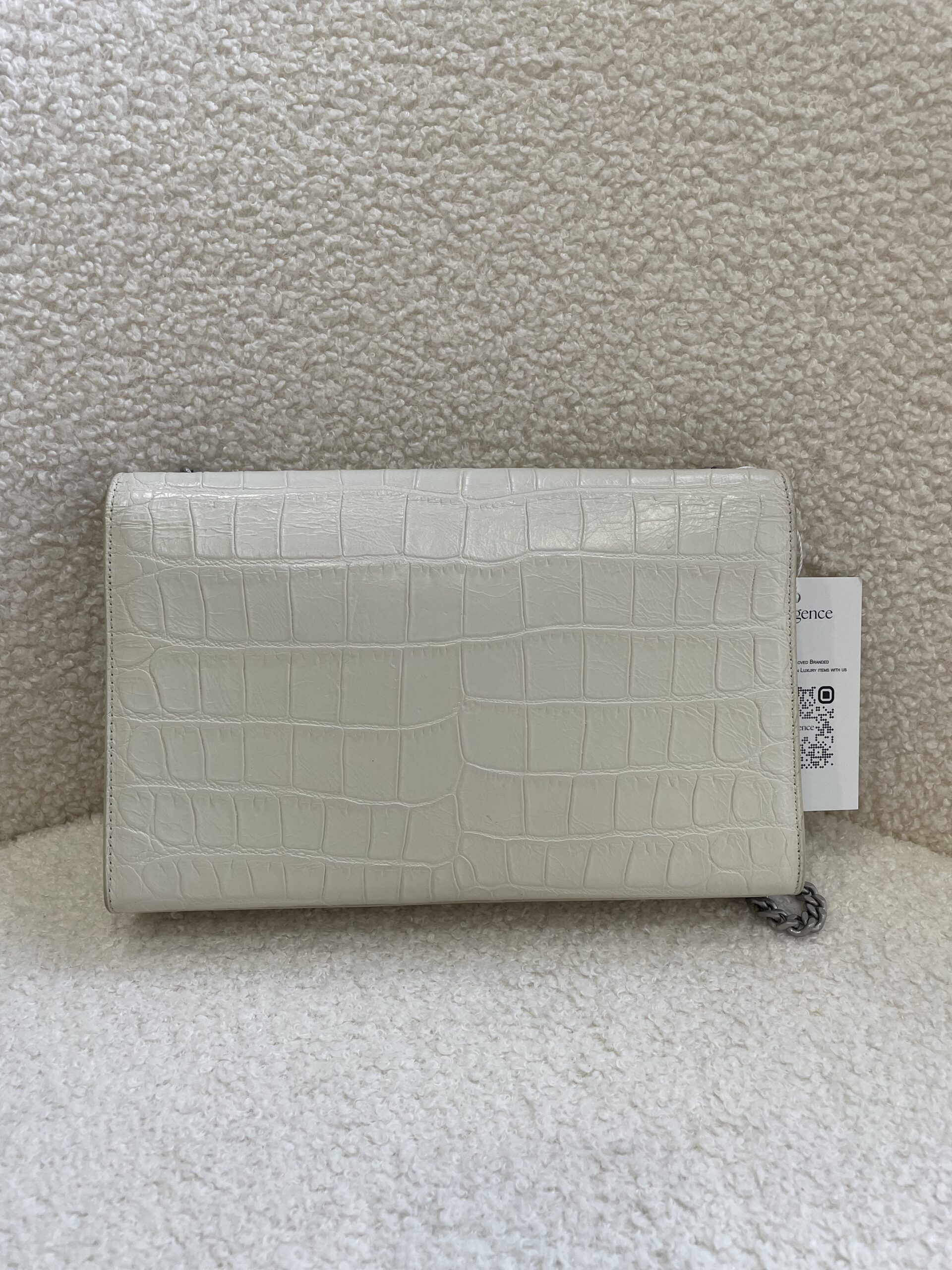 YSL Medium Kate Tassel White Croc Embossed SHW | ILG2063