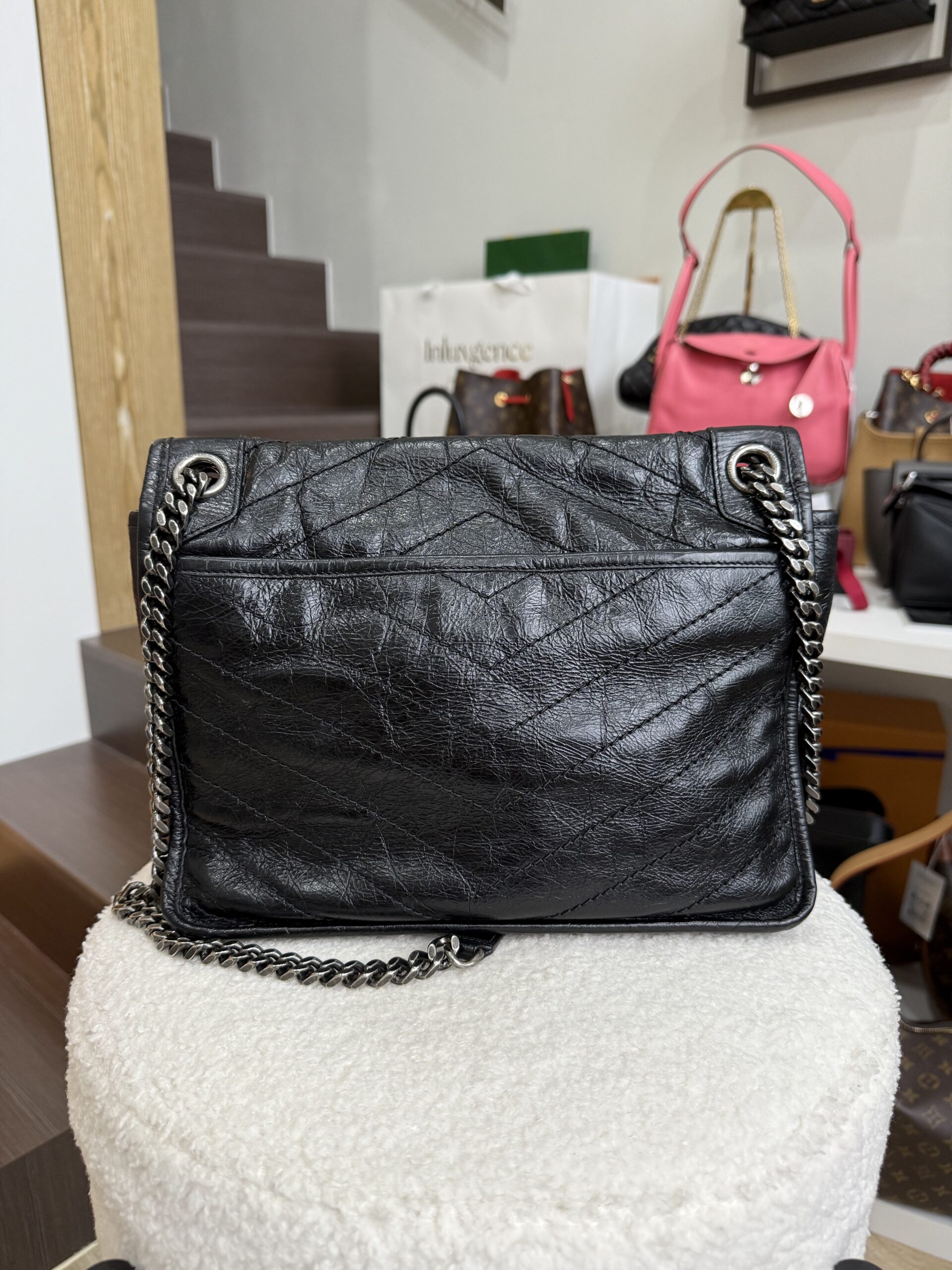 YSL Niki Medium Black Vintage Calfskin in Brushed RHW | ILG4532